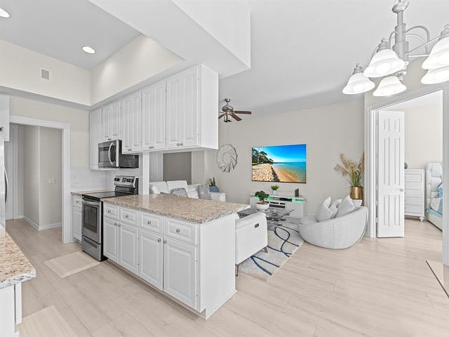 Step into luxury in this exquisite three-bedroom, two-bathroom pool home radiating contemporary elegance. Sunlight floods the expansive interior, revealing breathtaking lake views, and accentuating the chic kitchen with granite countertops and stainless steel appliances. Ambient lighting enhances the meticulously landscaped grounds enveloping the inviting pool area. Complete with hurricane shutters, ensuring safety and peace of mind. The sleek garage accommodates two vehicles or transforms into the ultimate man cave. Nestled in a gated community, relish resort-style amenities: pools, playgrounds, tennis courts, and a state-of-the-art fitness center. Riverwalk offers a cafe, general store, post office, and salon for unparalleled convenience...If there are any other properties that you'd like to know more about, please send me the addresses and I'll be happy to research them and provide you with additional information. ...Fernando CastroEnglish-Spanish...Courtesy of Keller Williams Realty - Welli (Listing 7091793 Confirmed 10/23/2024.)