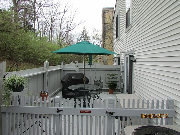 Welcome home!!! This is a two bedroom, two bath, first floor, end unit, open concept condo with newer flooring & vaulted ceilings. The kitchen features stainless steel appliances and the patio has been replaced with a new sliding door. Newer HVAC. You'll be able to entertain with the private deck and private yard. It's beautifully landscaped and has a 1 car garage and extra parking space.