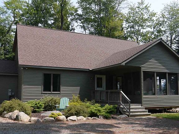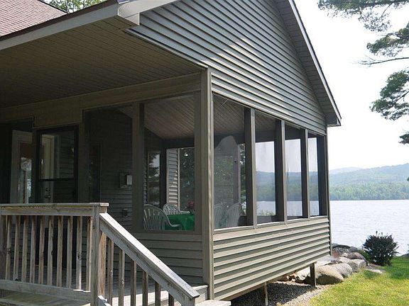 Immaculate year round 8 yr old waterfront home on Lake Pleasant, 100 ft of lakefront with sandy beach, large raised slate patio with built in fire pit, vaulted ceiling in living and dining area with lots of windows, masterbed on first floor with large bedroom and sleeping loft overlooking great room, 2.5 baths, cast iron propane stove, first floor laundry, 2 car attached garage and screened in porch, detached 10x10 tool shed, 40 feet aluminum dock included, house comes fully furnished with a few exceptions.