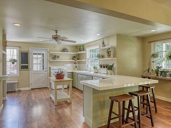 Character abounds in this unique 1942 Naval Depot Home relocated to this location in 1990. Original hardwood flooring throughout. Spacious country kitchen welcomes you in. Large dining space plus eating bar. Large main floor family room with fireplace. 4 bedrooms, including a main floor bedroom/office and 4 bathrooms in main home. Basement features a non-egress bedroom, bathroom, laundry and workshop/craft area plus tons of storage. Covered back deck/porch is a great addition to this home. The yard! It is spectacular! Auto sprinklers and tons of blooming perennials and a giant garden area. 600sf, Airbnb/Mother in Law/Guest House above garage with bathroom. Room for a shop! Super efficient gas, hot water heat. You won't find another home like this in the Valley!!