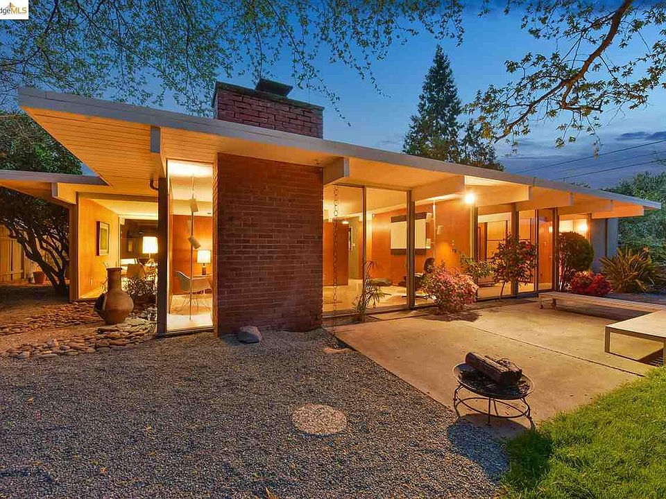 Just in time for spring, experience the best of modern California indoor/outdoor living in an Eichler! Located in the charming Rancho San Miguel neighborhood of Walnut Creek, this turnkey Eichler has all the updates you want without sacrificing authentic mid-century character. With original mahogany wall panels and globe lighting intact, updates include a kitchen with Scavolini designer cabinetry, stainless appliances and skylight, beautiful newer fixtures with penny tilework in the baths, & VCT flooring with radiant heating. Floor to ceiling glass in the living spaces and master bedroom with level stepouts into the spacious landscaped gardens ushers in nature as well as make the home perfect for entertaining. Highly regarded schools, open space parks, trails, shops and BART nearby.