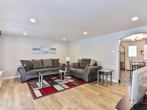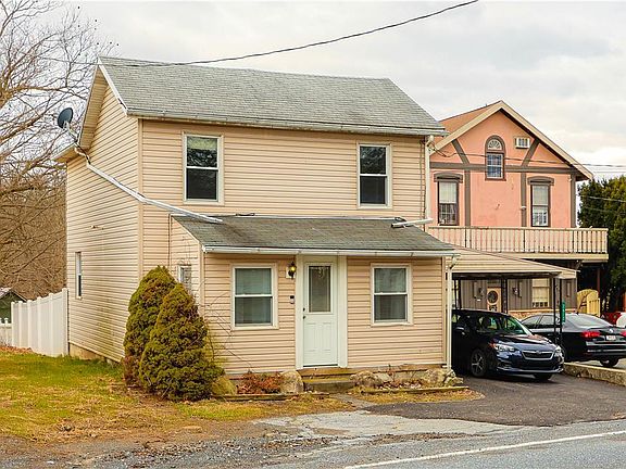 Move-in ready, two story home close to Bear Creek Mountain Resort! Nice laminate floors on first floor, gleaming hardwood upstairs, and fresh paint throughout. Large eat-in kitchen with SS appliances. Spacious living room with recessed lighting opens to office area. Upstairs you will find two large bedrooms and a half bath. Large fenced in yard with seating area and fire-pit. Driveway with carport leads to big garage with additional semi-finished area ready for your finishing touches. Newer roof, windows, siding, and water heater.