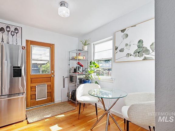 LIVE-WORK-PLAY! With no HOA! This modernized retreat is perfect for the discerning homeowner, who doesn't want to compromise location or layout. Owner has spared no expense to create a gourmet kitchen. From the exposed brick chimney, Bertazzoni oven and gas cooktop (w/brass burners) to Hans-Grohe faucet and counter depth Fisher Paykel Ref. Great indoor/outdoor entertaining with lg. polycarbonate covered deck. Refinished oak/fir flooring, new LG W/D. Water, sewer, and electrical extend to the 360 sq. ft. garage/ ready for ADU conversion (with P&Z approval) to afford extra income opportunity. Underground conduit exists for future electrical service changes. New roofs on house/garage, and new storage shed. This West End oasis has a large rear yard, perfect for gardening or gathering your own eggs. The location is ideal for utilizing all that Boise has to offer without a car. Pleasanton runs into Simplot Park with access to the greenbelt, wineries, breweries, restaurants, swimming, and waterpark surfing.
