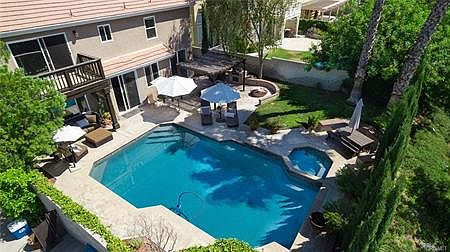 Gorgeous turn key home with a pool!!! This home is a must see! Beautiful hardwood floors and tile throughout. This home has 5 bedrooms and 1 Full bath and bedroom downstairs, great for guests. Remodeled kitchen with Viking appliances and Granite island. There are Plantation Shutters, Crown Molding, Base Moldings, Window Casings, Ceiling Fans, Custom Front Door and Retractable Screens. Beautiful Interior and Exterior Paint. Open Floor plan with Kitchen and family room. Fireplace and French doors. Spacious Master Suite with open smaller room attached and Balcony with a VIEW! Has a beautiful Pebble Tec Pool and Yard with covered Patio, fire pit and built in barbecue. On a CUL-DE-SAC!! The LOCATION is close to Freeway, Parks, School, and Shopping!!! This home is ready to move in and ENJOY!!