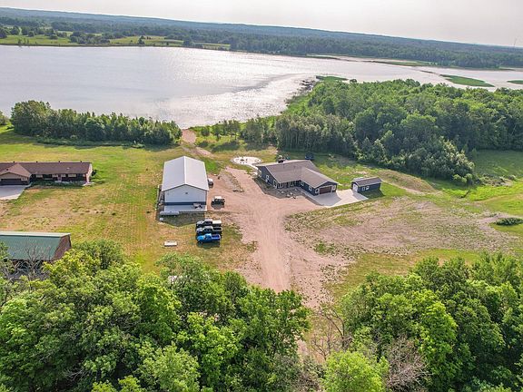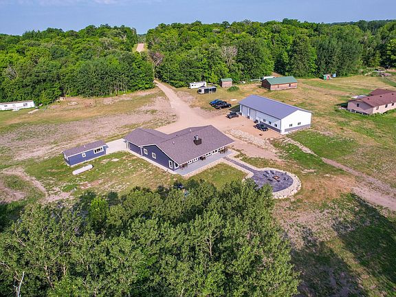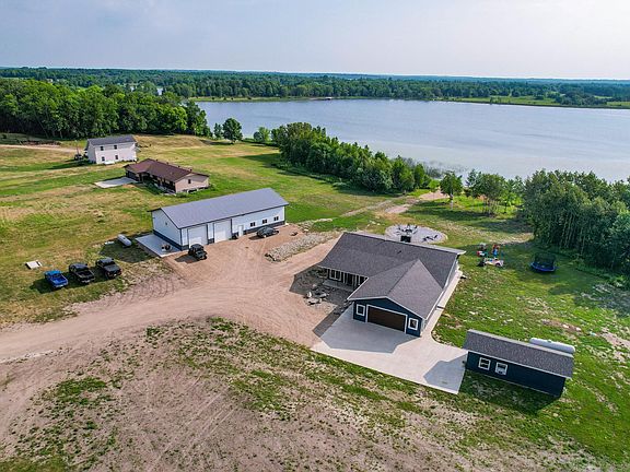 MUST SEE!!! 255 ft of shoreline on Rice Lake! New home on 5 acres, 3bd 2 bath all on one level! Gorgeous woodwork throughout, ALL walls of home and garage are 3" in spray foamed, in-floor heat throughout the home and in the double attached garage! Hot/Cold water faucets in garage, guest house, private driveway... all this and a bit more in a totally awesome setting!