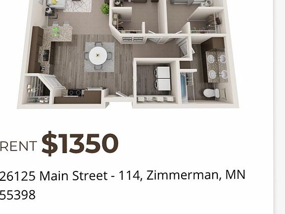 Brand new apartment complex! Cute, affordable, and so easy to apply for! AVAILABLE NOW ** I will pay your first months rent if you move in BEFORE April 1st,2020 ** Hi There! I am terminating my lease due to personal reasons and seeking a new renter! This apartment is adorable and love how simple the building is! Gina is the site manager and she is amazing. **Photos from Depot On Main.com and/or their display photos of the 1 bedroom from their Facebook listing** Please read below for more details: Income requirement: 1.5 times your income. Brand new 65-unit Apartment Complex located in Zimmerman. Non-Smoking Building 2 Bed / 1 Bath: $1350 Utilities included with rent: Heat, Water/Sewer, Trash/Recycling Tenant pays electricity. FREE Wifi is included! Security deposit is equal to one month's rent. Free off-street parking is available in the parking lot. Optional underground parking garage stalls are $100 per month. Dogs (& Cats welcome: 2 pet maximum allowed per apartment $250 Security Deposit (refundable) per pet $40 Fee (non-refundable) per pet $25/month per pet Pets must be spayed/neutered. Building & Grounds Amenities & Highlights: * Community Room (w/ outdoor deck) * Fitness Room * Trash Chute * Playground * Spacious Floor Plans * Balconies/Patios * Granite Counter Tops * Full-Size Stainless-Steel Appliances * Front Load Washer & Dryer in each unit * Center Island in Kitchen * Plank Flooring (kitchen) & Carpeting (most remaining) * Window Treatments * Large Pantries (most apartments) * Car Wash Stall (within underground parking garage) * Monitored Camera Entrances * Large-Capacity Elevator * On-Site Management * 24/7 Luxer One Package Lockers Apply on our website: www.depotonmain.com