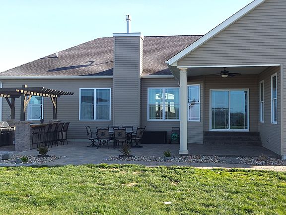 Stunning country home for sale. This home was finished in 2013 and is like brand new. The floor plan is open to the kitchen, breakfast nook, dining room, foyer, and living room which have hardwood floors, arched windows, and pillars. The kitchen boasts quartz countertops, a bar to seat six people, custom white cabinets, and stainless steel Kitchen-Aid brand appliances. The living room has 10 foot ceilings, a gas fireplace with stone from floor to ceiling, and built-in shelving. The dinig room features a large picture window viewing the huge front yard.The master bedroom has its own bathroom featuring; two person glass door shower stall, a large triangular heated and jetted whirlpool tub, double sinks with built-in shelving for a TV, a walk-in closet, and a separate door for the toilet. The 3.68 acre yard features a fenced backyard perfect for young kids and dogs, a covered stamped concrete patio, open pavered patio area, gorgeous landscaping, and an outdoor bar and pergola area. This home is perfect for entertaing inside and out. The basement has a finished bathroom with standing shower, toilet, sink and urinal. Downstairs is laid out to be finished with an extra bedroom, office, and huge 30'x36' living area. Perfect furture "man-cave"You must come see this beautiful, modern home. Located just South of Jerseyville, IL near highways 109 and 67 and only a 10 minute drive to I 255.