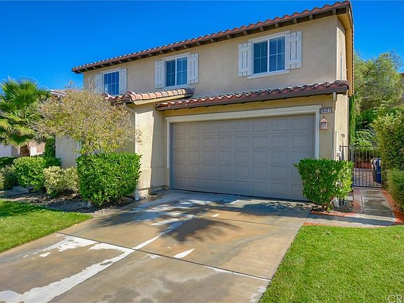 Spectacular home located in the gated community of Canyon Gate. This 4 bedroom, 2.5 bathroom has over 2500 sq ft of living space, vaulted ceilings with an open floor plan, and a bonus office room downstairs with beautiful french doors. It features a family room with a fireplace and surround sound speakers. The spacious kitchen has granite countertops, granite backsplash and stainless steel appliances. There are a lot of amenities sprinkled throughout the house such as a built-in entertainment center, built-in china cabinet and bookshelf, and medallion decorated tile floor. The paver lined backyard is surrounded by planters with tall hedge trees that provide plenty of privacy. The huge master suite has a luxurious master bathroom with a tub, separate shower, and walk-in closets for him and her. Three car tandem garage with direct access. Community amenities include clubhouse, pool, spa, and barbecue area. Close to schools, shops, restaurants and the freeway. NO Mello Roos.