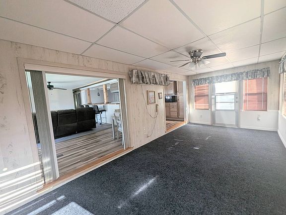 Step into comfort and style with this fully remodeled 2-bedroom, 2-bath home offering over 1,152 sq. ft. of living space, and additional space in a bright enclosed front room. Every detail has been thoughtfully upgraded-from the brand-new 3/4" plywood subfloors and sleek LVT flooring, to the showstopping kitchen with generous lighting, new stainless appliances, modern cabinetry, refreshed countertops, and a counter-height bar perfect for casual meals or entertaining.Enjoy the open flow of the spacious living room, ideal for relaxing or hosting guests. The primary bedroom is a true retreat, featuring a walk-in closet and a large ensuite bath with dual vanities and a step-in shower. The second bedroom and full bath also offer modern updates and comfort. A brand-new washer and dryer add to the move-in-ready appeal.Nestled in the vibrant 55+ community of Clover Leaf Farms, you'll enjoy resort-style amenities and a friendly neighborhood atmosphere. **Clover Leaf Farms is a 55+ community with monthly lot fees of $856 covering water, sewer, trash pickup 3 times a week, lawncare, and access to the many amenities including indoor and outdoor heated pools, hot tub, sauna, fitness center, library, pickleball court, shuffleboard, and much more!