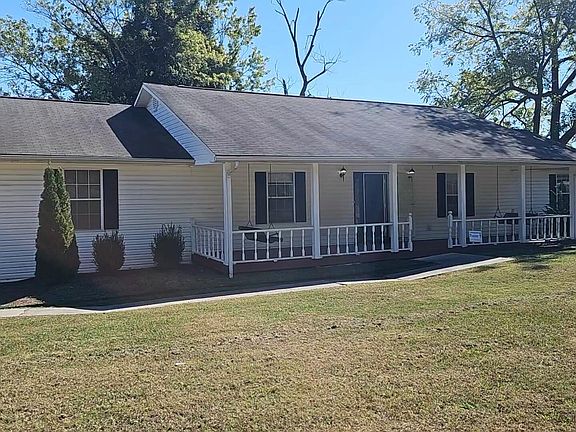 The ranch home offers a large front porch, sits on a level yard, kitchen with plenty of cabinetry and granite countertops.