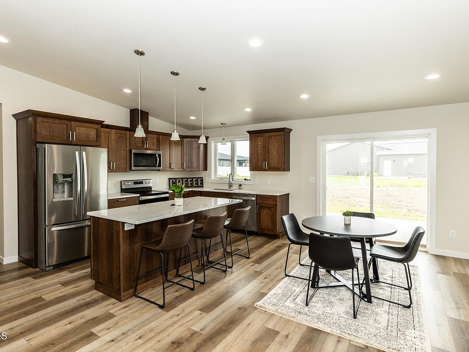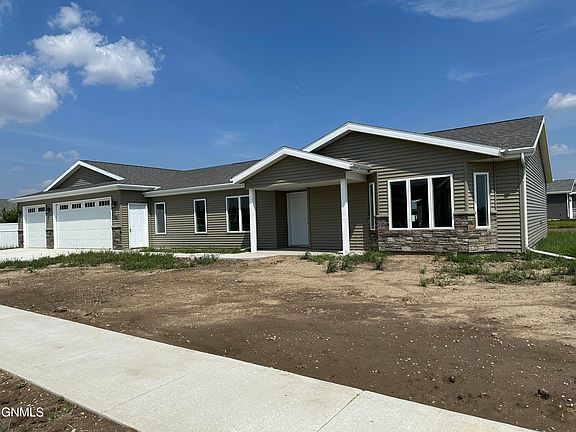 NO SPECIALS! Welcome Home to this Wonderful Patio /Slab on Grade Home located in South Bismarck. Offering approxinately 1800 finished sq ft this home boasts three bedrooms, 3 baths and triple garage w/ 996 sq ft. Quartz countertops, easy care flooring and upgraded appliances. The primary bath offers walk in shower, spacious vanity w/ dual sinks and walk in closet. There is also a 1/2 bath off the garage. Situated on a corner lot w/ NO Specials. See this one today!