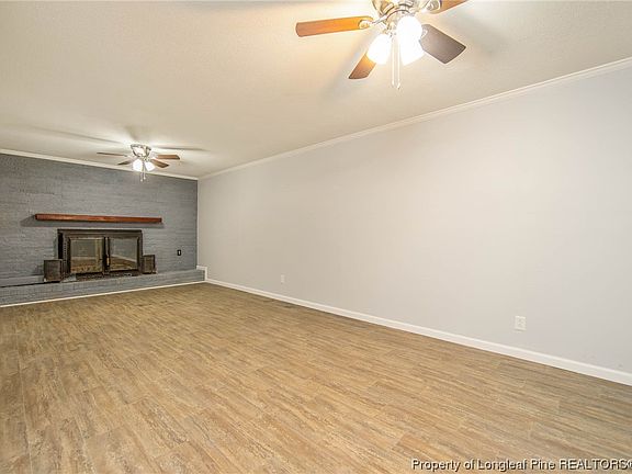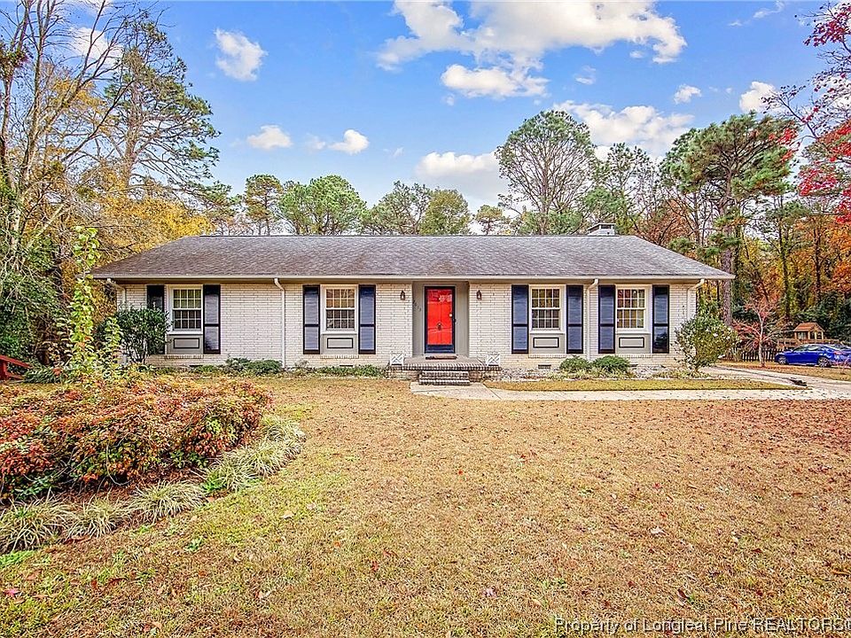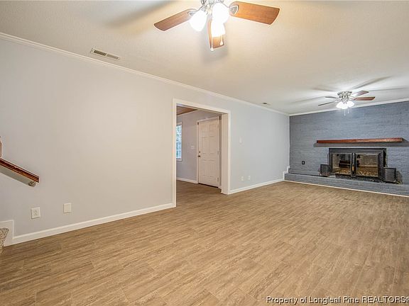 Well-loved ranch home with walk-out basement features over 2500 square feet. Living room, dining room, kitchen, 3 bedrooms, and 2 baths on the main level. Family room, bonus room, bedroom, bath, and laundry in the walk-out basement. Beautifully refinished hardwood floors and fresh paint upstairs. Kitchen has corian counter tops, stainless steel appliances and plenty of cabinetry. Crown moldings and chair rail in foyer, living room and dining room. Downstairs Family room has wood burning fireplace, LVP flooring and large bonus room. Screened porch and deck overlooks the backyard. Storage building, extra parking pad, basketball goal and additional storage under the house. Nestled in a well established neighborhood centrally located close to schools, hospital, shopping and Fort Liberty.