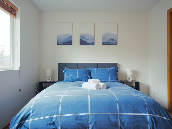 - Master Bedroom: Queen bed, walk-in closet, private bathroom