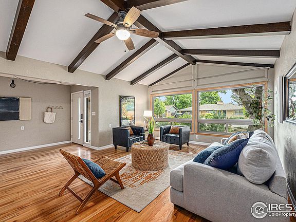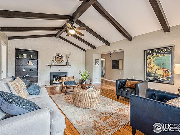 Mid-century loaded with charm and ideally located in the heart of Fort Collins. Relax in the spacious living room with vaulted beamed ceiling, brick fireplace with new gas logs, and large picture window with views of the professionally xeriscaped front lawn. Prepare a feast in the large kitchen with stainless steel double oven, gas stove, microwave and refrigerator included. Read a book, exercise or craft in the sun porch which leads to the enormous backyard with views of Horsetooth. Steal away to the sauna tucked in the backyard shed with a book from the library box out front. This is truly the ideal setting for your next chapter. Note: All new Anderson Windows with 20 year transferable warranty plus 3.75 kW solar panels free of encumbrances.