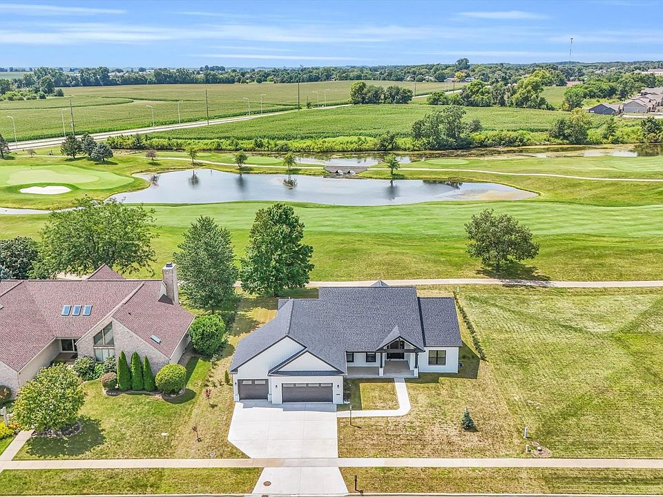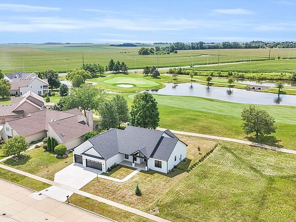 This beautiful ranch home with a full finished basement is located on the 11th hole of Urbana's premier Stone Creek Golf Course in the sought-after Stone Creek Subdivision. Built in 2023, this 5-bedroom, 3.5-bath home offers over 4,000 sq ft of finished living space and breathtaking golf course views. Upon entering, you're greeted by an open and spacious floor plan. The living room, highlighted by a beautiful fireplace and amazing natural light, flows seamlessly into the kitchen. The kitchen features a huge center island, updated light fixtures, and stainless appliances. On one side of the house, the spacious master suite offers a magnificent private bath with granite counters, a tiled shower, and a large walk-in closet. On the other side of the first floor, there are two more bedrooms and another full bathroom. The main level also includes a convenient drop zone and a separate laundry room. The expansive, finished basement provides additional living space, plus two guest bedrooms and a third full bathroom. Enjoy nature and the golf course views from the covered patio. Welcome home!
