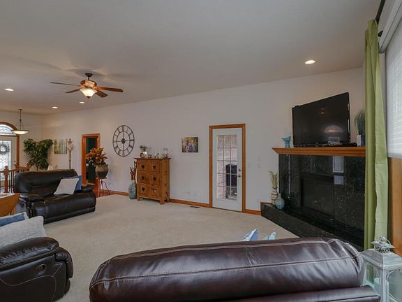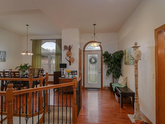 Beautifully landscaped, this gorgeous brick & stone walkout basement home is just as lovely inside as it is outside. This immaculate home features an open floor plan with raised ceilings and pretty hardwood floors. There are 2 gas log fireplaces-one on each level. Granite countertops, a raised breakfast bar, pantry & casual dining area enhance the fantastic kitchen. There are 5 bedrooms and 4 1/2 baths plus an exercise room or office. The master suite is enormous and provides a sumptuous bath with double sinks, jetted tub, shower & large walk in closet. The family room downstairs has a wet bar & opens onto a second covered deck which steps down to the patio with a firepit. Add'l features include 2 utility rooms, a new central vac with lifetime warranty, retractable screen (con't)