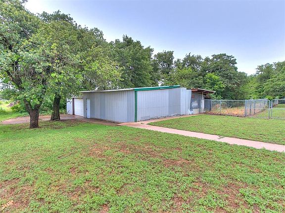Welcome to your dream retreat in Blanchard! Grandfathered into having city water but resting outside of city limits, this stunning home boasts 3 bedrooms, 3 full bathrooms, plus an office. Step inside to discover an inviting open floorplan accentuated by a gorgeous, stone wood-burning fireplace, perfect for cozy evenings. Situated on a generous 1.7-acre lot, this property offers privacy and tranquility, with a fenced yard including a convenient dog run for your furry friends. The highlight of this home is the spacious shop, complete with plumbing, providing endless possibilities for hobbies or storage needs. Safety is paramount with an in-ground storm shelter, offering peace of mind during inclement weather. Two of the bedrooms feature ensuites with their own bathrooms, ensuring comfort and convenience for all residents and guests. Don't miss your chance to make this one-of-a-kind property your own escape from city living.