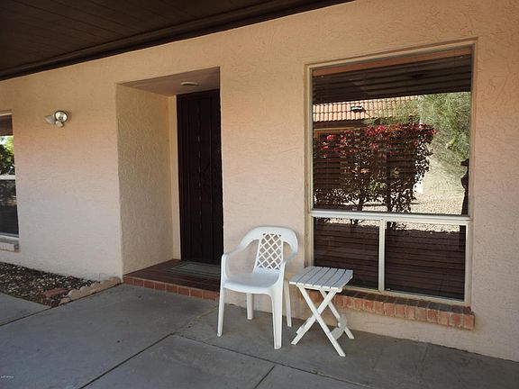 EXTRA-SHARP & MOVE-IN READY!!! Block constructed 2 bedroom, 2 bath updated great room plan w/atrium in the center of the home. Updated newer kitchen has 20'' tile floors in kitchen and dining room, stainless sink & refrigerator that is included! Extra-large great room w/ beautiful wood laminate flooring opens to pretty Arizona room (not included in the 1332 sf) but is another wonderful living space most of the year. The atrium is also viewed from the master bedroom that has a pedestal sink, large stall shower & walk-in closet! Hall bath has been beautifully updated. Convenient laundry room also opens to patio and the washer and dryer are included as well as the pantry cabinet! Fenced backyard & north-facing covered patio. Low HOA fee ($15/mo) in this pretty golf community!