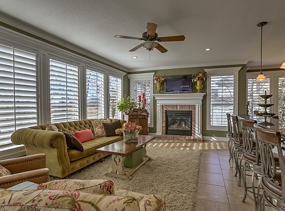 Golf Course Hide-away! Upscale Luxury Home on the 15th Fairway! Ideal for Entertaining, and Not So Huge it's hard to keep if you travel or are empty nesters! Stunning Entry, Large Living Room with Vaulted Ceiling! Huge Hearth Room with Tile Floors & Fireplace! Awesome Kitchen also with Tile Flooring, Granite Counters, Center Island, Walk-In Pantry and Beautiful Built-Ins. Amazing Trim Detail throughout home. Wall of Windows provide a beautifully bright home. Main Floor Master Bedroom has Vaulted Ceiling and Luxurious Bath! Basement finished leaving no details out! Beautiful tiled fireplace, large circular bar of granite, Game or Play Room, Large Great Room, Office and Bedroom.