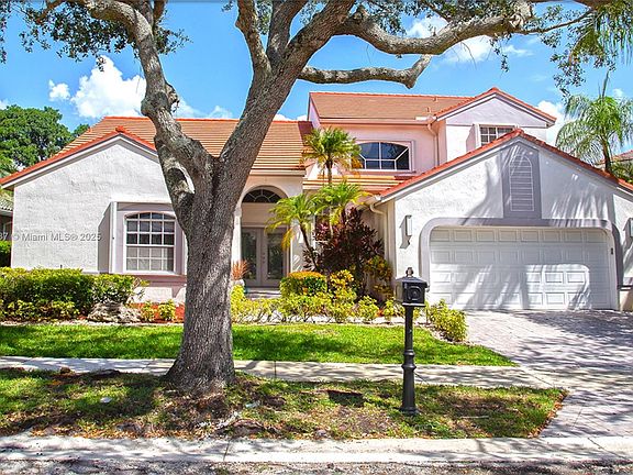 Located in the prestigious Weston Hills community, this elegant two-story home offers the perfect balance of space, privacy, and natural light. Its south-facing front and north-facing backyard allow brightness to flow beautifully throughout the day, enhancing the sense of openness and the soaring ceilings. The first floor features two bedrooms, including a spacious primary suite with direct access to the patio and pool area, ideal for privacy with no rear neighbors. Upstairs, you’ll find two additional bedrooms and a versatile loft, perfect for an office, studio, or fifth bedroom. With French doors, large windows, and neutral tile flooring, the home offers bright spaces ready to be personalized. The roof was replaced in 2018, the A/C is 10 years old, and the electric water heater is newer.