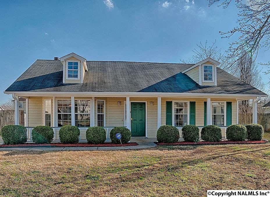 Beautiful open floor plan in South Huntsville! The great rm is grand in size with tall ceiling & delightful picturesque bay window. The unique kitchen features ample cabinet space w/ lovely countertops & overlooks the large dining area perfect for entertaining your guests. The master suite offers an abundance of natural light, trey ceiling, walk-in closet & private bath. Secondary bedrooms contain carpet throughout. Jump into Spring with a covered front & rear porch waiting for your outdoor furniture. This home is complete w/ a detached storage building & generous sized backyard w/privacy fence. Don't wait! This one is a must see!