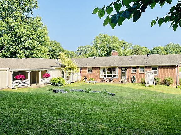 PRICE IMPROVEMENT & HOME WARRANTY! New $25,000 ROOF & gutter guards. CUSTOM BUILT home on 1.12 acre beautiful lot waiting for a new family to fall in love with it! 3 built-in bookcases, 12ft window in dining room overlooking the front yard, brick patio off the den (gas logs) partially wooded lot backs up to church property. Downstairs also has outside entrance into a large den/rec area, bedroom, 1/2 bath and more storage in a 2nd laundry room. The best of both worlds! It is conveniently located 17min from Nville, 15min to Nville Airport, 5min from restaurants/shopping/gas but it is quiet here. Large kitchen is functional, HUGE pantry. Great bones with storage galore, inside & out! Priced WELL BELOW Appraisal so 1% rate buydown w preferred lender.