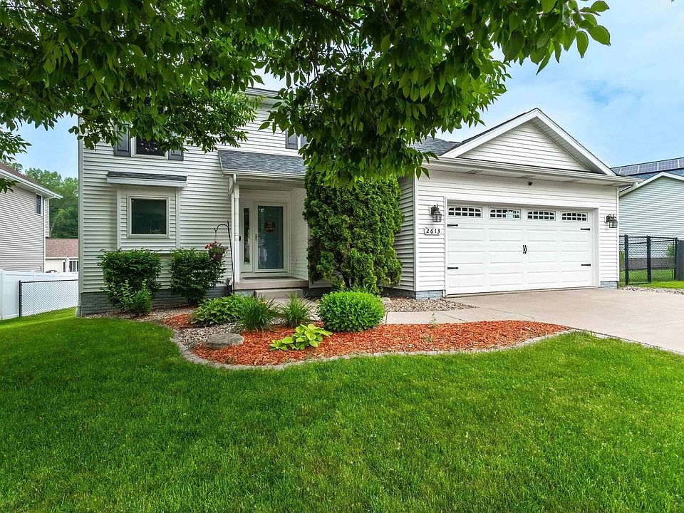 Located on a quiet cul-de-sac in convenient Sheffield Square neighborhood, this spacious home offers comfort, style, and functionality. The open-concept main level features a large living room with a gas fireplace, seamlessly flowing into the informal dining area and bright kitchen. The kitchen boasts plenty of cabinets and counter space, a breakfast bar, stainless steel appliances that stay, and sliding doors that lead to a large deck and fenced-in yard perfect for relaxing or entertaining. Other highlights include: main-level laundry for added convenience, primary suite with private bath and walk-in closet, finished basement with surround sound, egress window, large family room, game/rec area, and a 3/4 bath. Just move in and enjoy! Updates per seller: Brand new SS stove, freshly painted kitchen cabinets, new bsmt bath vanity all 2025, new SS fridge 2022, all appliances including washer/dryer and TV's mounted to wall stay. Measurements approximate should be verified by buyers. Sq footage per co. assessor.