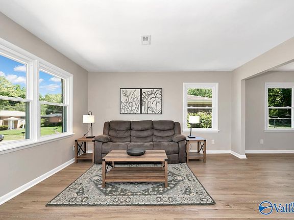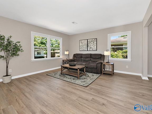 In a charming neighborhood with easy access to all Huntsville has to offer this home is move in ready and loaded with updates. New heating & cooling, new windows, a new water heater and a new garage door. It has been freshly painted inside and out and has new flooring throughout. The upper level features an updated kitchen with granite counters, tile backsplash and SS appliances, a living room and dining room, a main bedroom with a fully renovated en suite bathroom as well as 2 additional bedrooms and a second fully renovated bathroom. The lower level boasts a huge additional living space with built in shelving, a laundry room and access to the 1 car attached garage.