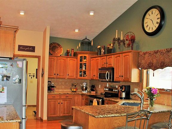 Fabulous West side 5 bedroom (3 on main), 3 bathroom ranch walkout with a heated 3 stall garage. Conveniently located near schools, shopping etc. Kitchen boasts granite counter tops, stainless steel appliances, wood floors and vaulted ceilings. Master bedroom with walk in closet and full bath. Spacious LL family room with fireplace and 2 additional bedrooms and full bath. Ample room for storage (21 x 21). This home is perfect for entertaining, enjoy the $40,000 patio addition with fireplace, built in grill complete with a privacy fenced yard.