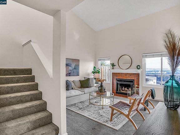 Welcome to your dream townhouse nestled in the heart of Martinez, California. This light and bright gem offers the perfect blend of elegance and scenic tranquility. With a spacious deck, a hot tub, and panoramic views of the East Bay, including the majestic Diablo Mountain Range. This property is a true sanctuary. Enjoy a well-designed floor plan allows for seamless flow between the living, dining, and kitchen areas. This updated kitchen is a chef's delight, featuring great appliances, ample counter space, and quality cabinetry. The expansive deck is accessible from the living area, providing an outdoor oasis while soaking up the views. Unwind in the hot tub after a long day's work. The master suite is a serene retreat, complete with its own private balcony, ensuring you wake up to awe-inspiring sunrises spanning across the Diablo Mountain Range. The en-suite bathroom is updated with a large walk in shower. Functional floor plan with all bedrooms on the same floor. Two car attached garage with plenty of room for storage. This beautiful community nestled amongst the hills and trees has sidewalks, a neighborhood pool, a tennis court, and a large play structure. Convenient freeway access for easy commute. And just a few minutes from the historic downtown Martinez!
