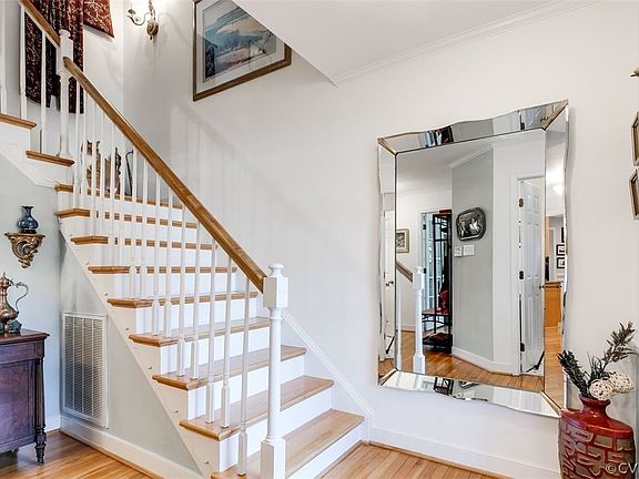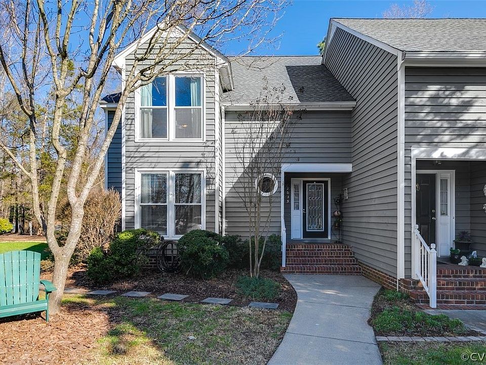 WOW! Lakefront community near Short Pump. Meticulously maintained community w/ new roof. This end unit has been beautifully cared for and updated. Hardwood Floors downstairs and upstairs; spacious foyer with crown molding; first floor bedroom/office den with double windows, crown molding and attached bath; new maple kitchen cabinets, granite countertops, pine ceiling and coffee/wine bar; sunken dining room with chair rail, crown molding and skylights with newer sliding door to screen porch; step down from foyer into the family room with gas fireplace w/slate surround, crown molding, fan and double windows. Love the pet safe screen porch with ceramic floor overlooking the hardscape backyard with bluestone pavers and concrete paver wall with mature plantings that fill in during the spring/summer for your privacy. Direct access from yard to the back alley to walk to the lake. Upstairs you will find the ceramic floor laundry closet w/ceramic backsplash in the hall along w/the pull down partially floored attic for storage. The bright primary bedroom is on the front w/walk-in closet and updated bath. Additional bedroom ensuite on the back of house with large bath w/jetted tub. Must see!
