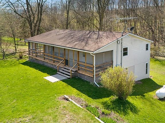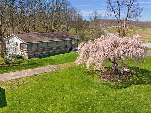 Quiet Country Hill Top setting with rolling views! Original owner home built with an open 28x13 Huge Eat In Kitchen w/ great spot for an island. Full rear walkout basement (gravity drain basement no need for a sump pump). Detached 40x24 Barn 2019 sided & roofed also has a separate electric meter & wood burning furnace included. New Well cover 2024, Cable & high speed internet is available. 200 amp electrical service, Well bladder & pump new 2020. First floor Laundry 2 bedrooms on the first floor & 2 bedrooms in the basement level. This home truly is almost over 2000 sf if the basement finished area is included. Sit on your full front Covered & Screened Porch & look out over the pastures & Livestock. Truly a great setting with a back drop of woods. Enjoy! Delayed Negotiations until April 29th at 2pm