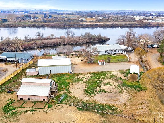 Amazing views and well built 2X6 construction this home has it all! Perfect for mini farm and just minutes from Homedale or Caldwell. Sits with direct access to state land & the Snake River with a dock for access - no back neighbors - quiet area. Home features spacious rooms with a vaulted great room - open to family room & dining area. Kitchen features plentiful counter areas with a separate sink in the island - work area, oversized corner pantry and double sink with natural light from a large window. Lots of cabinetry for a cook's delight kitchen - white appliances. Primary Suite features double walk in closets, lots of windows accenting the views & a huge living space - the bath area includes double vanities, walk in shower, spacious dressing area counters - features an office/den off the Suite. Two additional bedrooms are spacious with sizeable closet areas. Second bath includes a new sink, built in linen cabinet -separate tub/toilet area. Additional amenities in the Docs section -BTVAI- Easy to show!