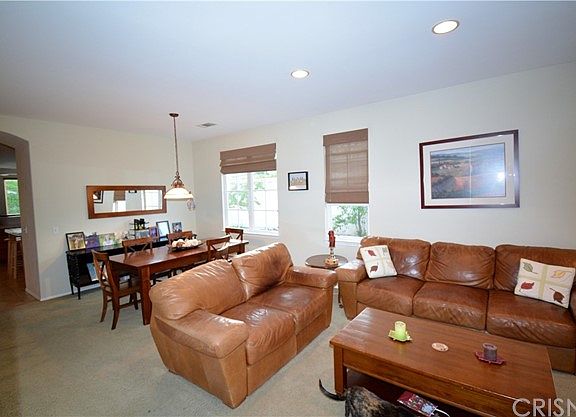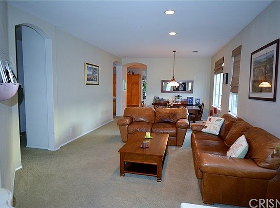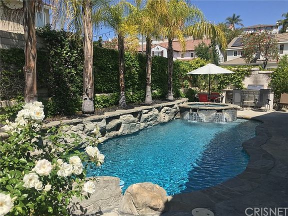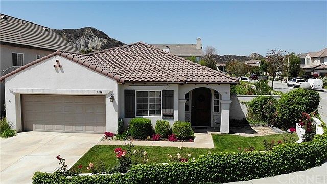 Rare Stevenson Ranch single story pool home. Largest single story home on the market in 2 years. Four bedroom or three and an office with 2 full bathrooms. This home features an open floor plan with high ceilings. Enter this home to a formal living and dining room with no neighbors on this side. Large kitchen with Island, breakfast bar and room for large kitchen table. Also Plenty of cabinets and storage. The connected family room features built-ins and fireplace with glass door leading to pool. Nice master with master bath with dual sinks, separate shower and tub and walk in closet. Inside laundry room. The pool and spa are surrounded by palm trees, and built-in BBQ. Large side yard, plenty of room for your needs. 2 car direct entry garage with built-in storage. Located in prestige Stevenson Ranch with outstanding school, large park, shopping and freeway close. Low MELLO ROOS, only $55 a month expires in 2027