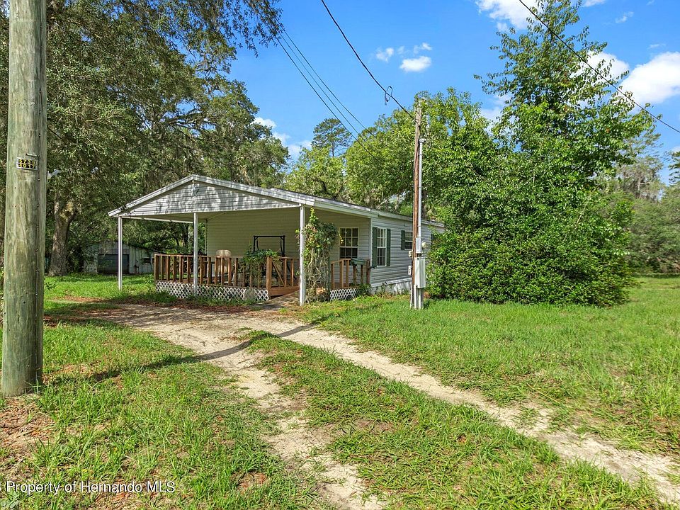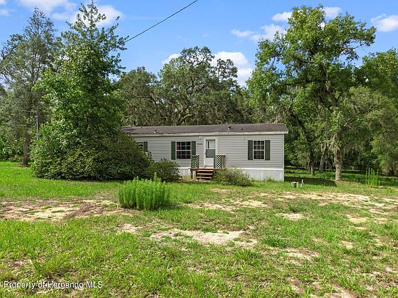 This 3 bedroom, 2 bathroom home is located in Deer Haven Estates, sits on 5 acre parcel, zoned AG so you can bring your animals. Home features: open great room to dining room, master bedroom with walk in closet, master bath with tub and separate shower, washer and dryer inside laundry closet, a large covered wooden deck porch off home, garage with work shop with leaning post and awning off the back of the building, fenced with front gate, carport and shed for extra storage. HVAC 2017. Original Roof. Quiet rural community not far from the Withlacoochee state forest and the Chinsegut wildlife trail. Enjoy the beautiful scatted oak trees offering shade and privacy. Beautiful property, home needs TLC and is priced accordingly. Sold As-Is, cash terms only. Schedule to view this home today!