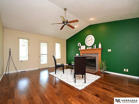Townhome located in Southeast Lincoln on a quiet cul-de-sac. The moment you walk through the door you will notice the hardwood floors run through the entry and dining room into the vaulted ceiling living room with gas fireplace for all those chilly nights. The kitchen has an open floor plan with beautiful, remodeled cabinetry. The 3-season sunroom off the living room will be a perfect place to enjoy the sunrise and morning coffee. Primary suite on the main floor with two closets, en-suite bathroom next to the laundry. Basement has one bedroom with its own bath. They stylish Bi-parting doors in the basement lead you to a newer media/game room with LVP flooring and also wired for surround sound. updates include newer heat pump, water softener and water heater.