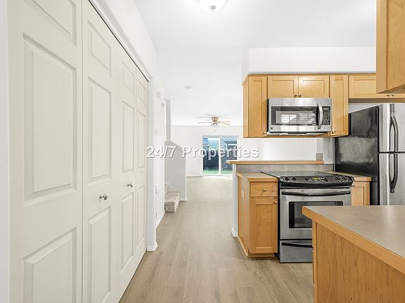 This charming 3-bedroom unit seamlessly combines charm and convenience. Upon entry, a delightful half bathroom offers a quick refresh after a bustling day. Down the hall, discover a fully equipped kitchen for all your cooking needs, with a cozy breakfast bar that adds dining convenience. Adjacent to the kitchen, you will find a laundry area nearby featuring washer and dryer hookups. Completing the lower level is a bright, inviting living space, perfect for unwinding and relaxation.