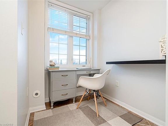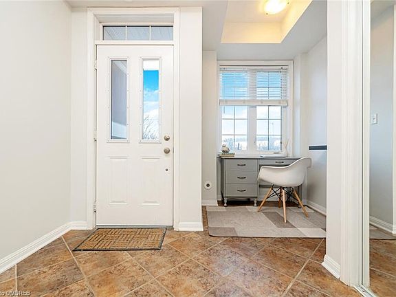 Bright & beautiful 4-level townhome has 2 bed, 2.5 bath, 2 separate office spaces & 1278sq ft! Ground level has garage access & the perfect work-from-home office space. Up the upgraded maple staircase, the main floor offers luxury vinyl floors, pot lights, 2-pc bath, laundry & large living/dining room. Stunning kitchen w/ quartz, backsplash, s/s appliances, gas range, upgraded cabinets, pot lights, breakfast bar & walk-out to a balcony w/ gas bbq hookup. Master has huge walk-in closet, Juliette balcony & upgraded glass shower in 3-pc ensuite. Upstairs also offers additional bedroom with double closet & 4-pc main bathroom. 4th floor loft offers quiet office nook & a rooftop balcony with lake views! Steps from parks, hospital, trails, transit, shops & restaurants!