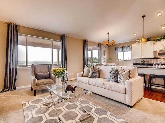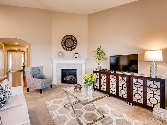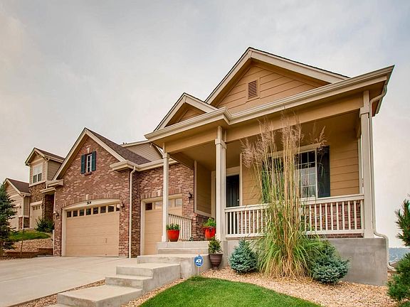 Immaculate ranch with builder finished walk out basement and panoramic views of the Castle Rock valley, sitting on almost a quarter acre lot with outdoor living spaces. Step inside to hardwood floors that extend from the entry into the open kitchen and eating space. Enjoy the tranquil sunrise from the covered no maintenance deck. Gourmet kitchen offers cream cabinets with 42" uppers highlighted by the decorative backsplash. Slab granite countertops and stainless steel appliances including double ovens, gas cooktop, microwave, dishwasher and refrigerator. Master boasts dual walk in closets and a spa like five piece bath with granite countertops and tile floors. Finished basement boasts a large Rec room and additional media room with French doors plus an additional bedroom and full bath. Entertain on two patios and enjoy the peaceful landscape design. Central air, 3 car side by side garage and move in ready!