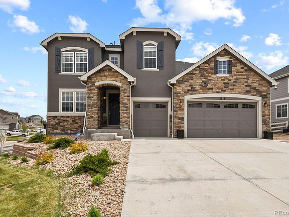 OVER $16K worth of landscaping planted in 2024. This 6B/5B home boasts over 5000 square feet of living space and is situated on a corner lot in the sought-after Carriage Hills neighborhood. The home features a freshly painted interior and an open concept living area, ENGINEERED HARDWOOD throughout and gatherings. The main level offers a dedicated dining room with crown molding, a dream kitchen with stainless steel GE Profile appliances, large island, and a breakfast nook. Upgraded features include beautiful subway tile backsplash, quartz countertops, a butler's pantry, and a walk-in pantry. The main level includes a bedroom/office, half bathroom, laundry room with a utility sink, and a walk-in closet conveniently located off the garage entrance. The 3 car garage features automatic motion lighting. All hardware has been upgraded and light fixtures have been meticulously chosen to complement the design. Window coverings provide a balance of light filtering, black out and custom living plant roman shades. Ceiling fans found throughout, with oversized fans in the living room and upstairs loft. Recessed lighting adds a touch of elegance throughout the home. The upper level features a primary suite, a spacious loft area, and three additional bedrooms. One of the secondary bedrooms boasts an en-suite full bathroom with custom tile flooring. The basement offers a garden view with large windows, providing ample natural light. This versatile space currently features a bonus room (perfect for a music studio, theatre room, or non-conforming bedroom), a large great room, a bedroom, and a full bathroom. Four unfinished storage spaces offer additional storage solutions. The back yard features two raised garden beds, a large concrete patio, a 75-foot concrete walkway leading to the front of the home and a retaining wall. For peace of mind, the property features a security system with 6 exterior self-monitoring cameras,2 interior cameras, and motion-activated security lighting.