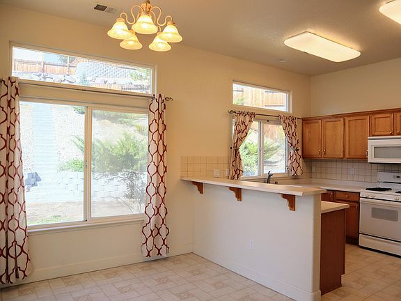 Welcome to this charming move-in ready home, located in the desirable Northridge neighborhood in Carson City. This lovely single-story stucco house is situated on a 1/4 acre with local mountain views. Inside the home you will find 12' ceilings, a gas stove in the living room, and a walk-in closet off the master bedroom. The kitchen features a gas stove/oven, a microwave, and refrigerator/freezer, with a breakfast bar. There is also a separate laundry room. Master bathroom has double sinks. Outside, the spacious back yard is landscaped and features a covered and uncovered patio that provides enough space for seating and entertaining. The oversized 3-car garage is perfect for all your toys. Tenant is responsible for utilities including water/sewer (City utilities), Gas and electric and garbage service. Internet/cable is not included. No smoking. Tenant must maintain yards and all landscaping.