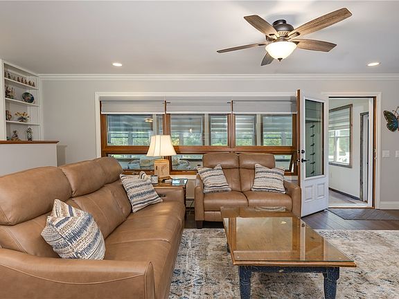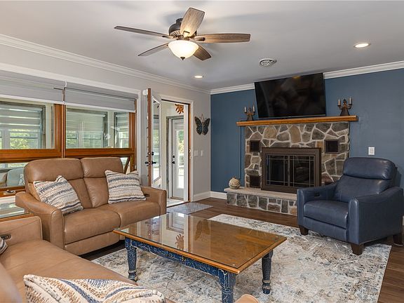 Off the cozy living room featuring a gorgeous fireplace surround, you'll step into a fully insulated three-season room, ideal for relaxing or entertaining. The sunroom leads out to a large deck that overlooks the expansive yard—perfect for outdoor gatherings or quiet evenings under the stars. Additional features of this remarkable home include central air conditioning, beautiful wood accents, and custom high end blinds from Select Blinds.