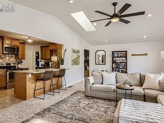 You've been waiting for this charming Brick Rancher near downtown Colorado Springs, less than a mile from the historic Patty Jewett Golf Course - a neighborhood where you can meander tree-lined streets, run/walk/ride along the Rock Island Trail, or enjoy great food & entertainment amenities close by. This home has a huge addition on the back side, used as a Great Room with high vaulted ceilings, a skylight and large windows flooding the home with light and spacious living. In this open concept, you'll love the completely remodeled kitchen featuring a Breakfast Bar, Granite Counters, Stainless Steel appliances, Tile floors and rich Cherry Cabinets. Upon entry, you'll be greeted by a generous Living Room and Formal Dining Room as well. Because of this home's retro style, you'll discover that all of the living spaces are flexible allowing you to repurpose for your own lifestyle needs. Features include original Hardwood Floors in the Nook and the 2 main Level Bedrooms. The master bedroom also has a private Bathroom, completely updated with dual vanity, stand up shower and a walk in Closet. The other 2 Bathrooms in this home have also been completely updated so no renovations are needed here. The basement, with it's brand new carpet, has an equally large basement Family Room along with 2 more Bedrooms (one without a closet). This family room has a new Barn Door as well as a beautiful stained, tongue & groove ceiling. Also a combo Laundry & Utility room. The detached 2 car "oversized" garage has access from the alley and the Backyard is perfect for entertaining or quiet afternoons away from the world. Many matures trees add shade and keep things cool on warmer days. It's simply a beautiful, one of a kind home waiting for you to come and see it today. Other features include A/C, Radon Mitigation, Crawl space for Storage and a wood burning Fireplace. Fully fenced yard for pets w/ a designated dog-run too.