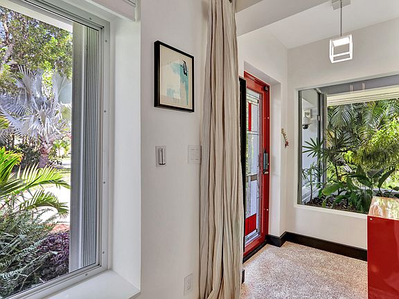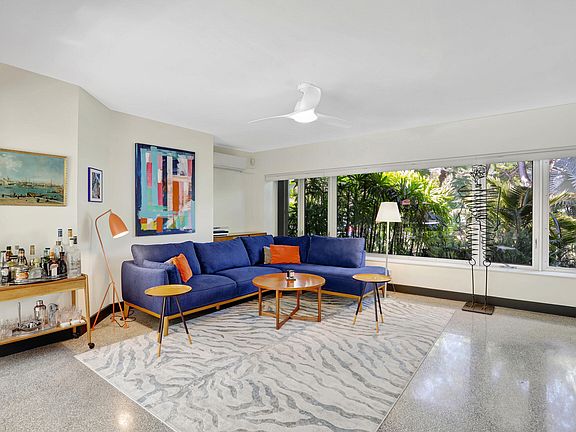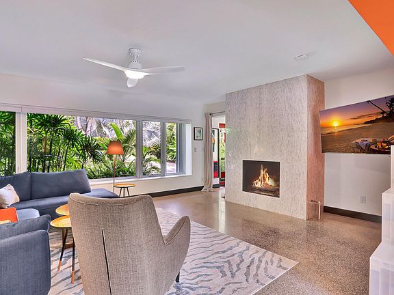 Step into your private oasis with this rarely available, exquisite 4 bed plus den, 4 bath residence, nestled on an expansive 21,000 sq ft lot (the second largest in Coral Ridge). This home has been beautifully designed and renovated, and original features restored, to create a perfect blend of style, comfort, convenience, privacy, communal and personal space. There's an abundance of natural light and lush tropical outdoor spaces to relax, rejuvenate and socialize. Large windows create an airy feel and offer breathtaking views of the meticulously landscaped garden with its inviting and completely private pool area. As you enter, a striking gas fireplace clad in pristine cloud-white Brazilian calcite in the living room sets a welcoming tone, blending with the beautifully restore terrazzo floors. Relax in the serenity of the Florida room and lounge areas, ideal for leisurely afternoon naps, social get-togethers, or entertaining in the dining space. The expansive windows curve around, inviting the outside in. The heart of the home is a beautiful and functional new custom-crafted kitchen with frameless European matte lacquer cabinets contrasted by a stunning Brazilian sapphire quartzite countertop and breakfast bar area. The high-end appliances feature a Samsung bespoke 4-door French refrigerator, a Bosch induction cooktop with turbo boil, a Bosch double oven tower, and a dual-zone wine cooler that elegantly illuminates as you pass by. The ingenious raised Bosch dishwasher with built-in lighting makes bending to load and unload a thing of the past. There's an abundance of storage space with easy-access pantry drawers and a kidney-shaped, dual-tier Lazy Susan tucked in the corner for optimal organization. The five bedrooms are thoughtfully arranged so you can enjoy your own private space while still uniting at the heart of the residence. Each one boasts spacious closets. The primary pool suite is complete with kitchenette, gorgeous bathroom and sliding doors leading out to the deck. The front suite also offers a kitchenette, ample storage and stylish bathroom. Two further spacious bedrooms enjoy a bright, modern connecting bathroom with subway-style tiles and rain shower. The fifth bedroom enjoys views across the front of the house and easy access to a main bathroom. For energy efficiency and year-round comfort, there are seven mini-split AC units throughout half of the home, which can also provide heating when needed; the rest of the home has an updated traditional HVAC system. A tankless water heater ensures you never run out of hot water. With five exit and entry points, the layout provides ultimate accessibility, flexibility and privacy. This residence caters to all your leisure desires. The inviting saltwater pool and separate hot tub are edged with natural limestone that stays cool in the heat and are equipped with a new heater and multi-colored lighting, all conveniently app-controlled. The pool area features dedicated spaces for dining, lounging, soaking up the sunshine or chilling by an open fireplace under a pergola, with sliding nets for bug-free relaxation. A heated outdoor shower lets you refresh in the sunshine or the moonlight. This haven enjoys lush gardens divided into two layers, an inner and outer, providing unparalleled privacy and tranquility. The outdoor lighting is customizable with remote control, allowing you to set the mood effortlessly. The back garden has designated zones for growing tropical delights such as limes, lemons and oranges, starfruits, mangoes, lychees, bananas, and guavas. The spacious outer backyard offers endless possibilities, from installing a pickleball court or basketball court to constructing a treehouse. The home has hurricane-impact windows with accordion shutters for double protection, as well as a newly installed roof. There is a gas generator that seamlessly activates during power outages, and a gas dryer that significantly reduces household expenses. Storage is abundant, with a large exterior storage room. The long, curved driveway can comfortably accommodate a boat on a trailer, jet skis, and 6 cars. There's built-in security cameras and secure keyless entry, which includes fingerprint access for peace of mind. Experience the epitome of luxury and tranquility, where everyone can revel in their own space. This is not just a home; it's a real sanctuary that combines elegance, comfort, and modern living.