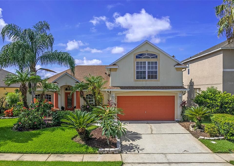 BACK ON THE MARKET - WELCOME HOME TO YOUR OWN PARADISE - Mature tropical landscaping surrounds this captivating 5/3 Landstar "Nouvelle" model nestled in the "The Oaks" Golf Course community. This fully furnished home features 4 bedrooms & 2 Baths on the first level with a very large bonus room w/full bath & walk-in closet above the garage. As you enter, you will find the pristine living room on your left & dining room on your right. As you make your way into this lovely home, you are met with the bright and airy spacious chef’s kitchen with 42” Oak Cabinets and the Family Room overlooking the enclosed Lanai. The 3-way split floor plan allows for privacy for all 4 bdrms and bonus room. The open floor plan is conducive to never feeling isolated from family and friends. The Master Suite offers a sitting area, 2 Walk-In closets & the Master Bath is well appointed w/Dual Sink Vanities, a Walk-In Shower & separate Garden Tub to relax after those long days. The guest bedrooms provide privacy. Updates include AC replaced in 2016, the roof was replaced in 2018, Water Heater in 2017 and exterior Painted in 2017. The Enclosed Lanai area is indeed one where you can enjoy the serenity of your environment - views of the Golf course and beauty of Florida sunrises/sunsets. This home offers comfortable living for a family with an excellent layout for entertaining and exemplifies the beauty and functionality of open concept living. This beautiful home is being sold fully furnished (except for seller's personal items). The Oaks offers an 18-hole championship golf course sprawled among 100-year old Oak trees, playground, tennis & basketball courts, pet waste stations throughout, storage lot for RV/Boat (small fee) & convenience to the Sunrail Station, numerous shopping and dining options, schools, medical facilities, Kissimmee’s Lakefront - Lake Toho (championship bass fishing), theme parks, airport, transportation & much more. This little bit of heaven offers you the GOOD life - Come Discover YOUR new home!