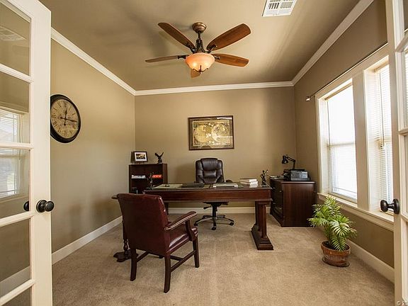 1-story, full brick, 3 bedroom & office, 3 car garage w/work space & safe room. Open floor plan. Granite kitchen has custom cabinets. Fireplace features fire-stones. Refrigerator, washer/dryer & outside grill stay.