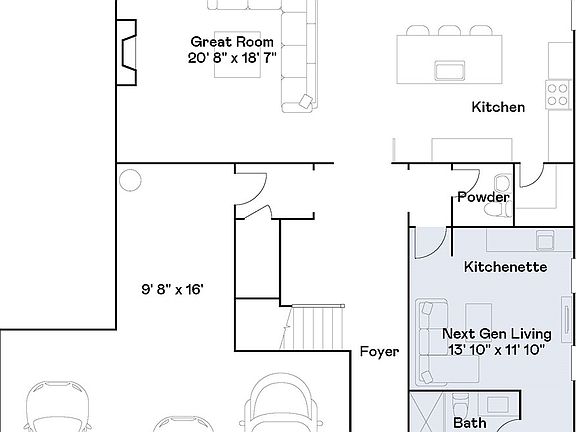 This two-story home is a Next Gen® design that's ideal for multigenerational households, home office, home schooling, guest quarters and so much more. The private attached suite features it's own living room, possible kitchenette, bedroom, bathroom and laundry. In the main home, the living and dining spaces occupy the first level in a contemporary open floorplan, while three bedrooms, a versatile loft and a tech space are found upstairs. Sample photos of model home. Self guided tours available 7am -7pm.