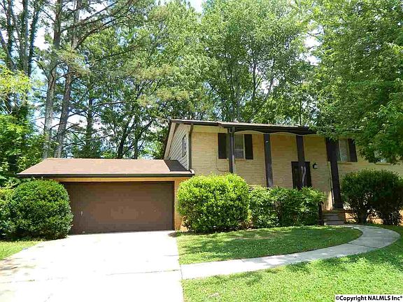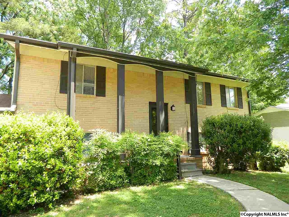 4 bedroom / 2 bath split level has newly refinished hardwood floors and some fresh paint, new kitchen countertops and kitchen sink. Pretty lot with mature trees and chain linked fence back yard. Welcoming covered front porch; elevated rear deck with built-in seating has bird's eye view of back yard. Call for a showing today! 256-650-2156.