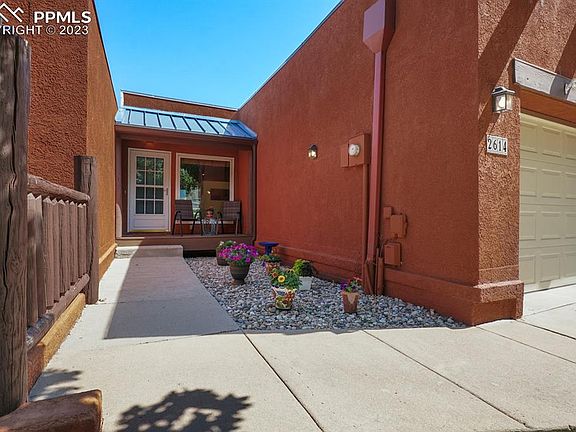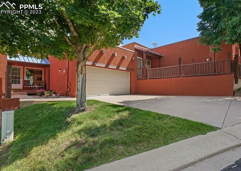 Welcome Home to this beautiful southwest-inspired abode and the freedom of no-maintenance living! The inviting front entry courtyard beckons you to relax on the new composite deck . And you'll love the spacious light, bright open floor plan that draws you to the NEW composite deck with patio below which backs to open space - perfect for cool, summer evenings and protected year-around enjoyment. The main level includes Great Room accented by gas fireplace and large Primary Bedroom with NEW bath that boasts roomy walk-in shower. The resident chef will be impressed with the well-appointed Kitchen that includes NEW stone countertops, NEW appliances and large pantry. Two more spacious bedrooms, full bath and workroom complete the walk-out lower level. Ideally located just steps from guest parking, hiking trails and dog park, this treasure is in the heart of award-winning Academy School District 20. Plenty of restaurants, entertainment and shopping are within a mile, too. Some of the fabulous recent upgrades to this home include NEW roof, NEW furnace, fresh NEW interior paint and upgraded baths. Pride of ownership shines through!
