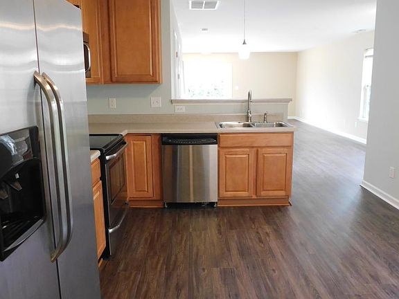 Stunning end unit townhome in Wakefield! Tons of natural light! New vinyl hardwood planked floors throughout downstairs! Great sized kitchen w/ 42" cabinets, pantry, eat in area & 42" cabinets! HUGE family room w/ great wall space! Large sliding glass doors leading out onto oversized patio! Wide hallway upstairs! Large master bedroom w/ walk in closet! Master bath has dual vanity, soaking tub & separate shower! Great sized guest bedrooms w/ jack-n-jill bath! Oversized garage! W/D hookups! Community pool!